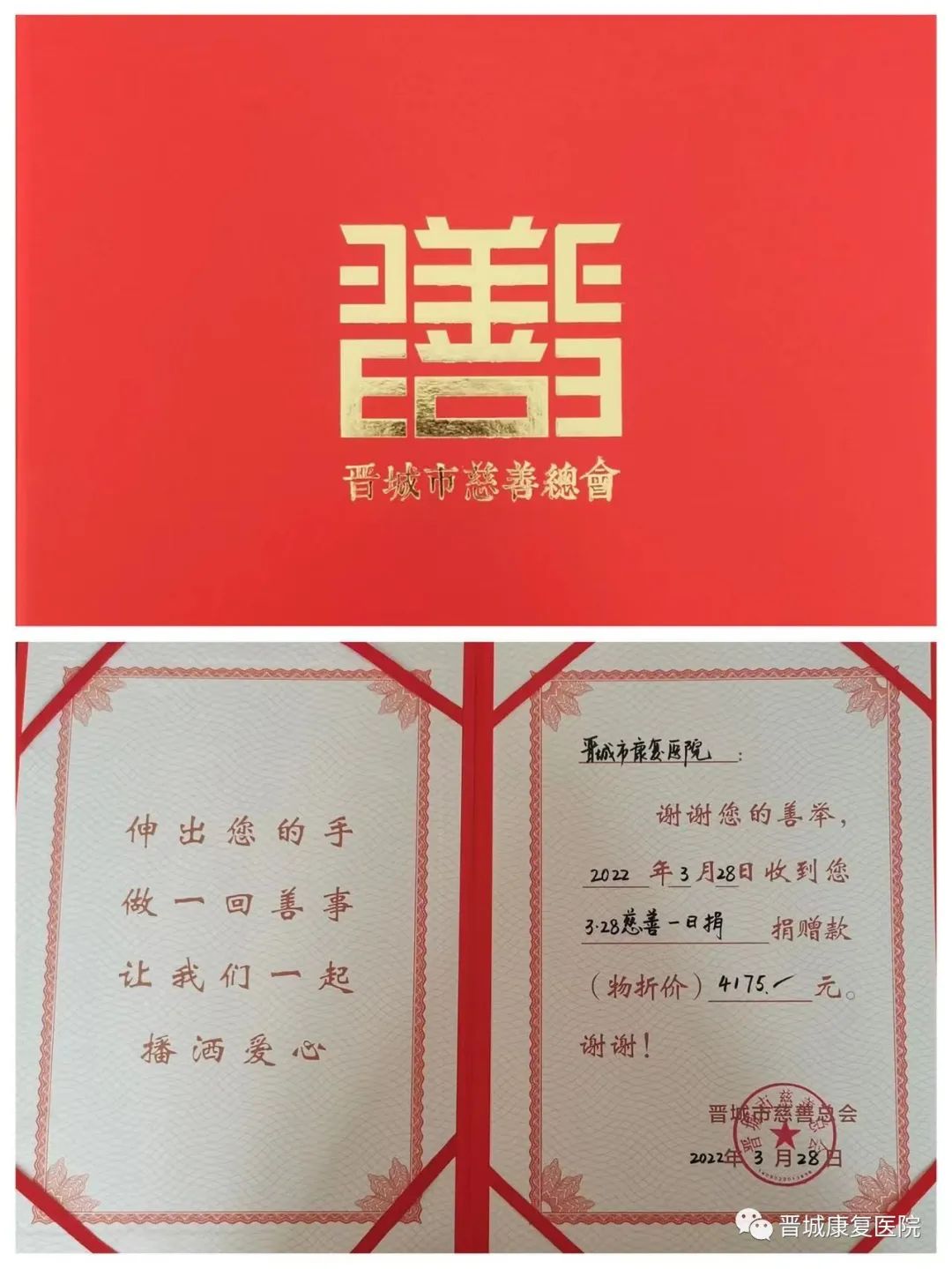 为积极响应市委市政府及市残联的号召,弘扬传播慈善精神,发展慈善事业,用实际行动共同关心、共同参与、共同支持慈善事业,3月28日,我院开展了“慈善一日捐”活动。