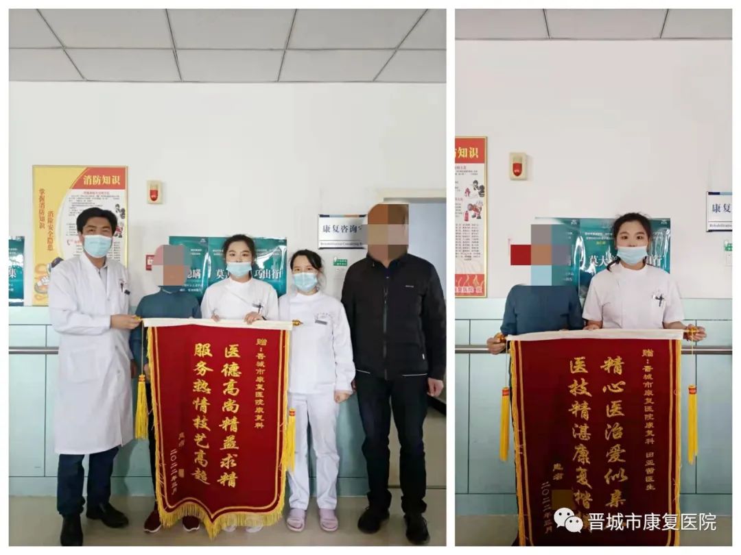 康复科表示:“这两面锦旗对我们的工作既是肯定和褒奖,又是鼓励和鞭策,将激励我们不忘初心,牢记使命,为患者提供超级高质量的康复服务,努力打造医德高尚、技术过硬、服务优质的康复团队。”