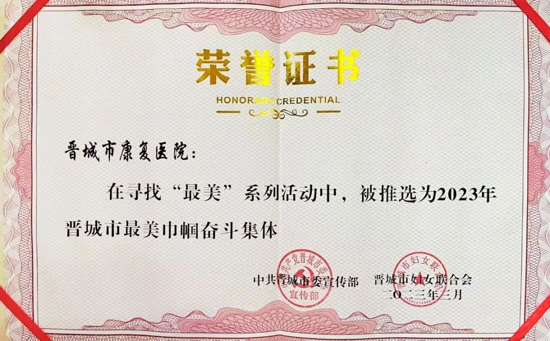 经层层推荐审核,市委宣传部、市妇联决定授予晋城市康复医院2023年晋城市“最美巾帼奋斗集体”荣誉称号。