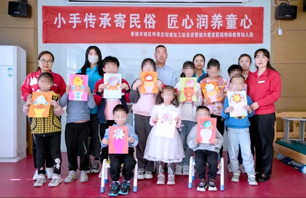 为了让特殊儿童感受到社会大家庭的温暖,培养特殊儿童的动手能力,5月13日上午,晋城市城区钟家庄街道社工站携非物质文化遗产继承人王棒老师走进晋城市康复医院特殊教育幼儿园举办了“小手传承寄民俗,匠心润养暖童心”关爱特殊儿童剪纸手工活动,共10余名特殊儿童参加了此次活动。