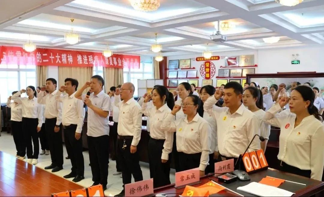 在晋城市康复医院党支部书记、院长马强同志的领誓下,全体党员高举右拳,面向党旗庄严宣誓及与会党员重温入党誓词,一句句铮铮誓言,铿锵有力,唤醒了党员们“最初的记忆”,进一步增强了全体党员的党性意识,坚定了理想信念。