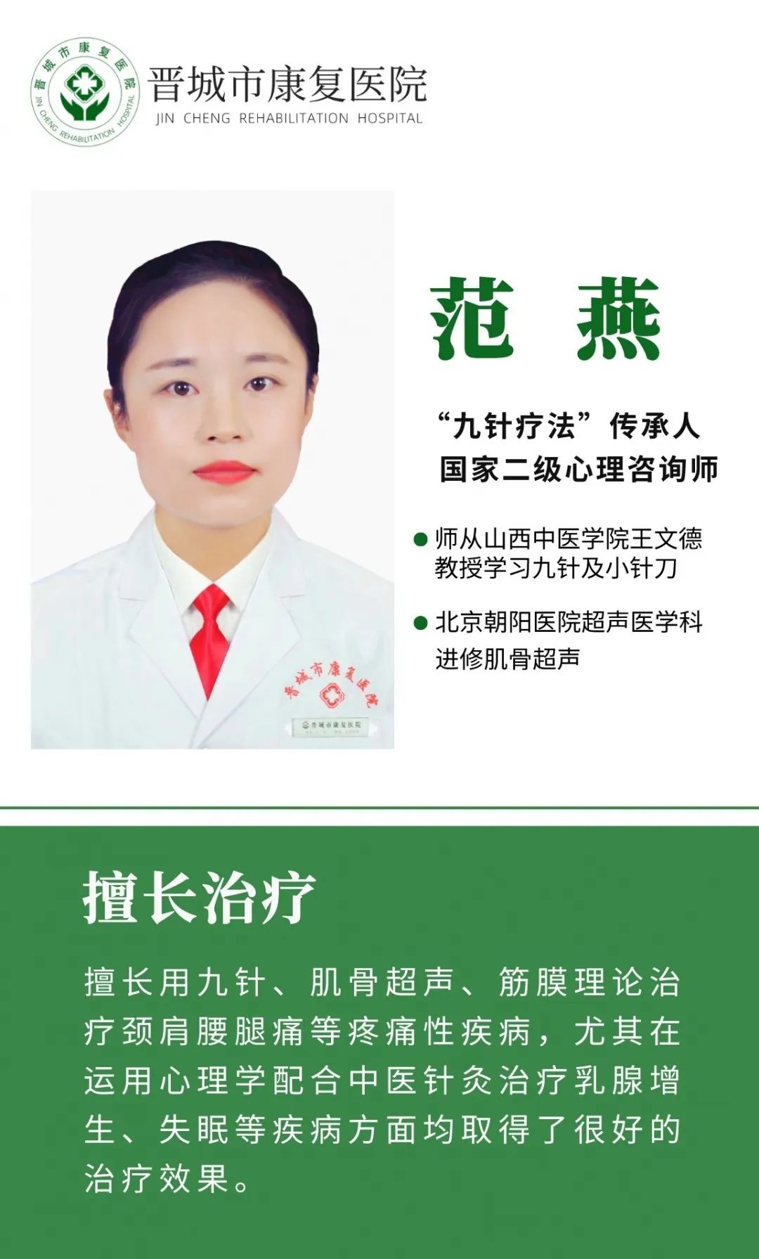 坐诊地点:晋城市康复医院一楼大厅针灸二科