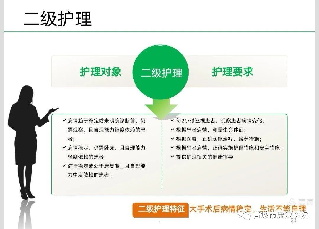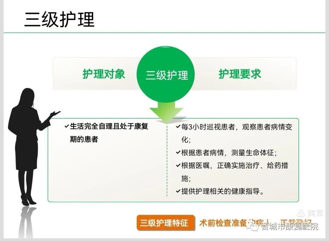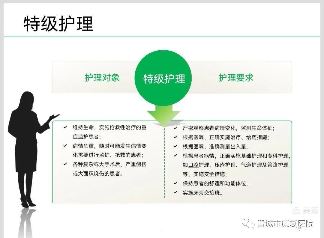 具体分为:特级护理、一级护理、二级护理、三级护理。